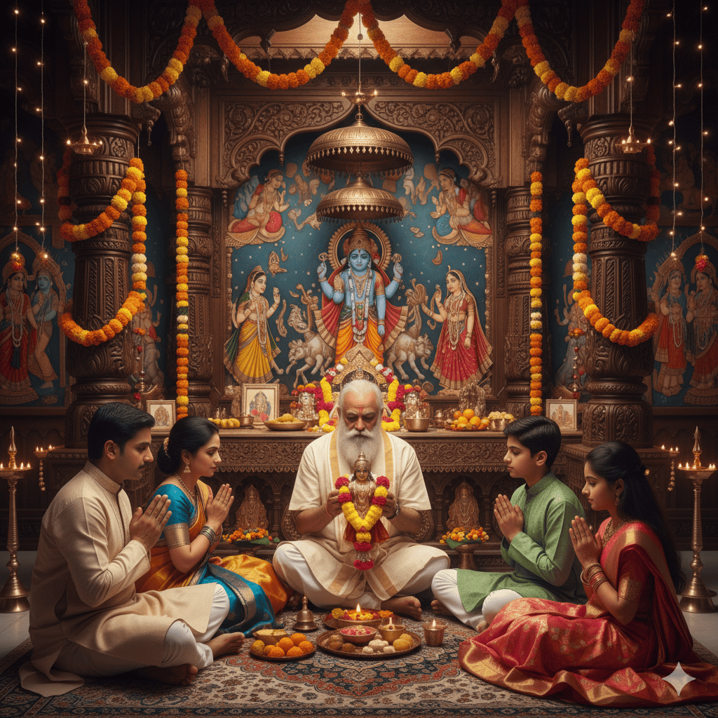 This puja strengthens family bonds, promotes happiness within the family, and relaxes the mind. Chanting mantras and performing abhishekam bring peace and positivity to your surroundings.